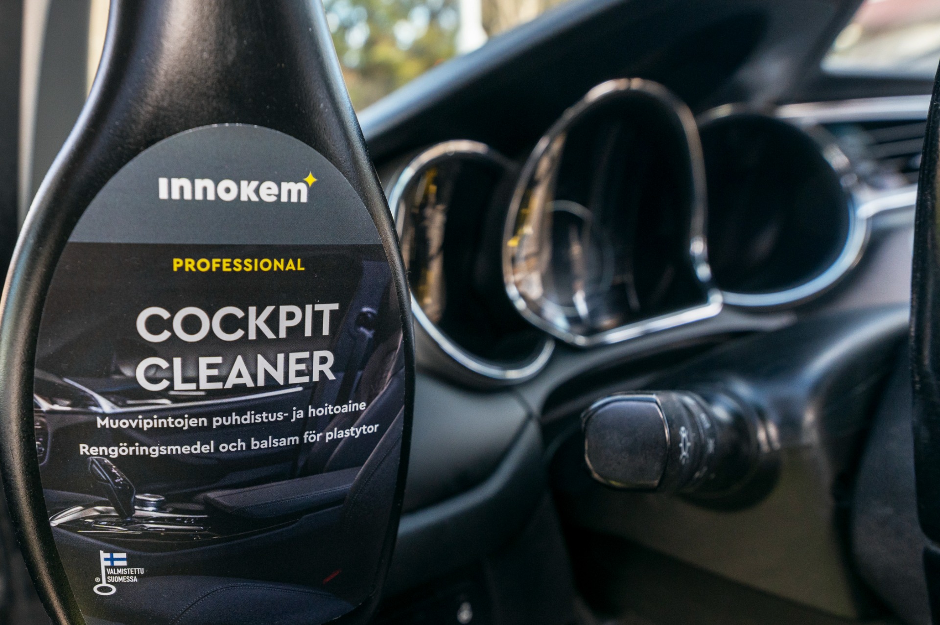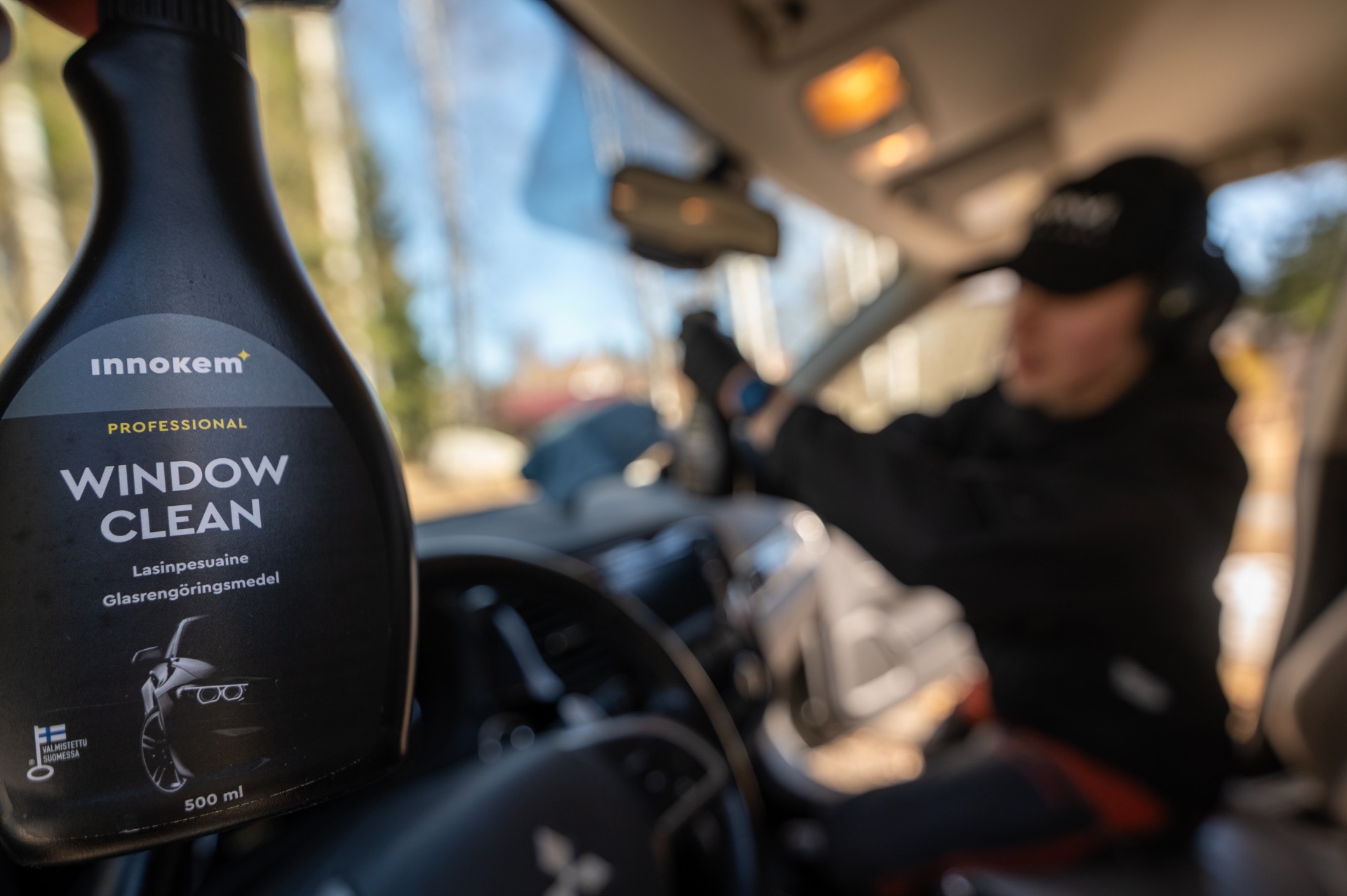 Käytän kotimaisen Innokemin laadukkaita, vastuullisia ja ammattikäyttöön tarkoitettuja puhdistusaineita, jotka jättävät autoon sopivan raikkaan tuoksun.
